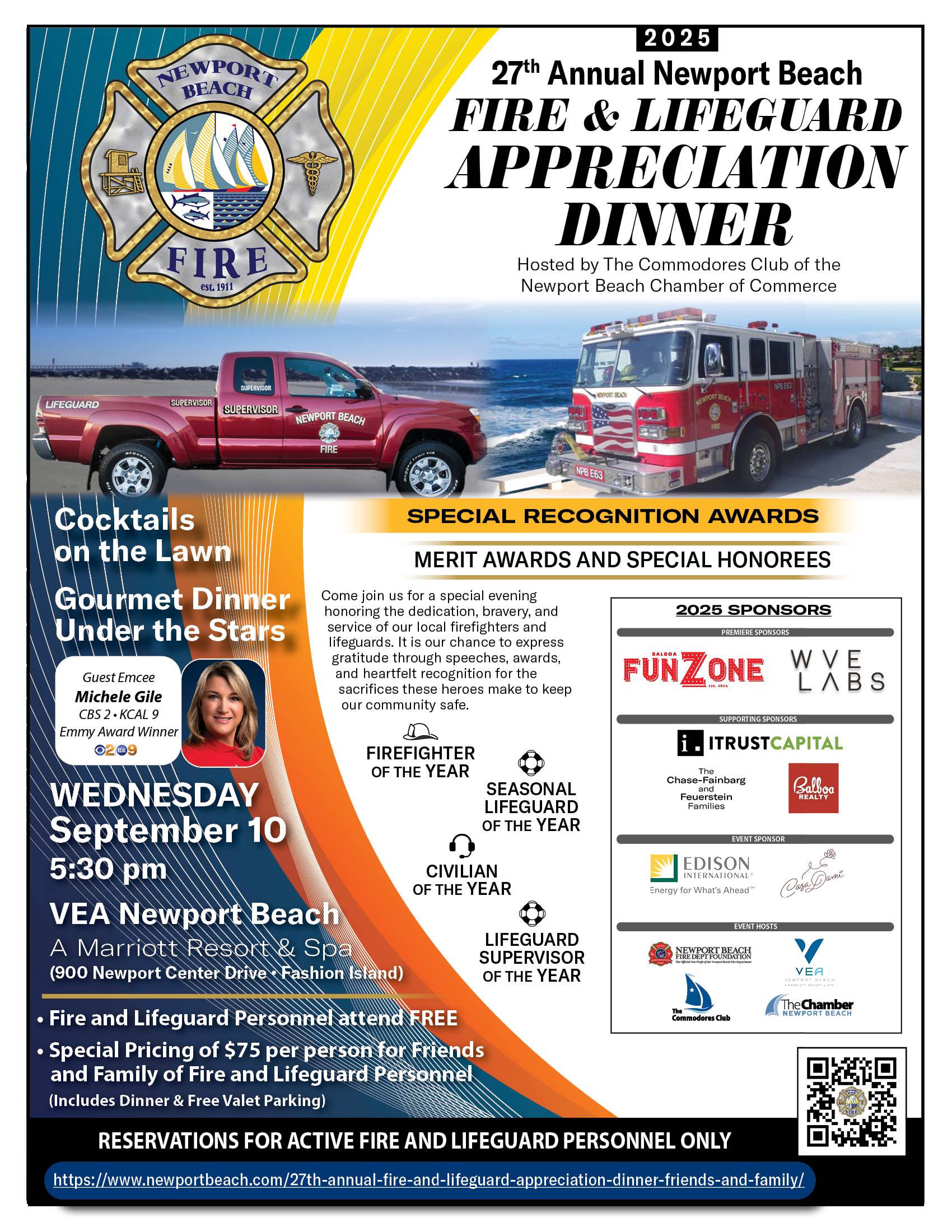This reservation form is for Newport Beach Fire and Lifeguard Active Personnel and Administration and their family and friends.