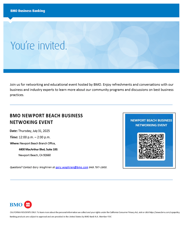 The Newport Beach Chamber of Commerce makes every attempt to insure that the online event calendar is correct and up to date. However, we suggest you verify information with Chamber staff.