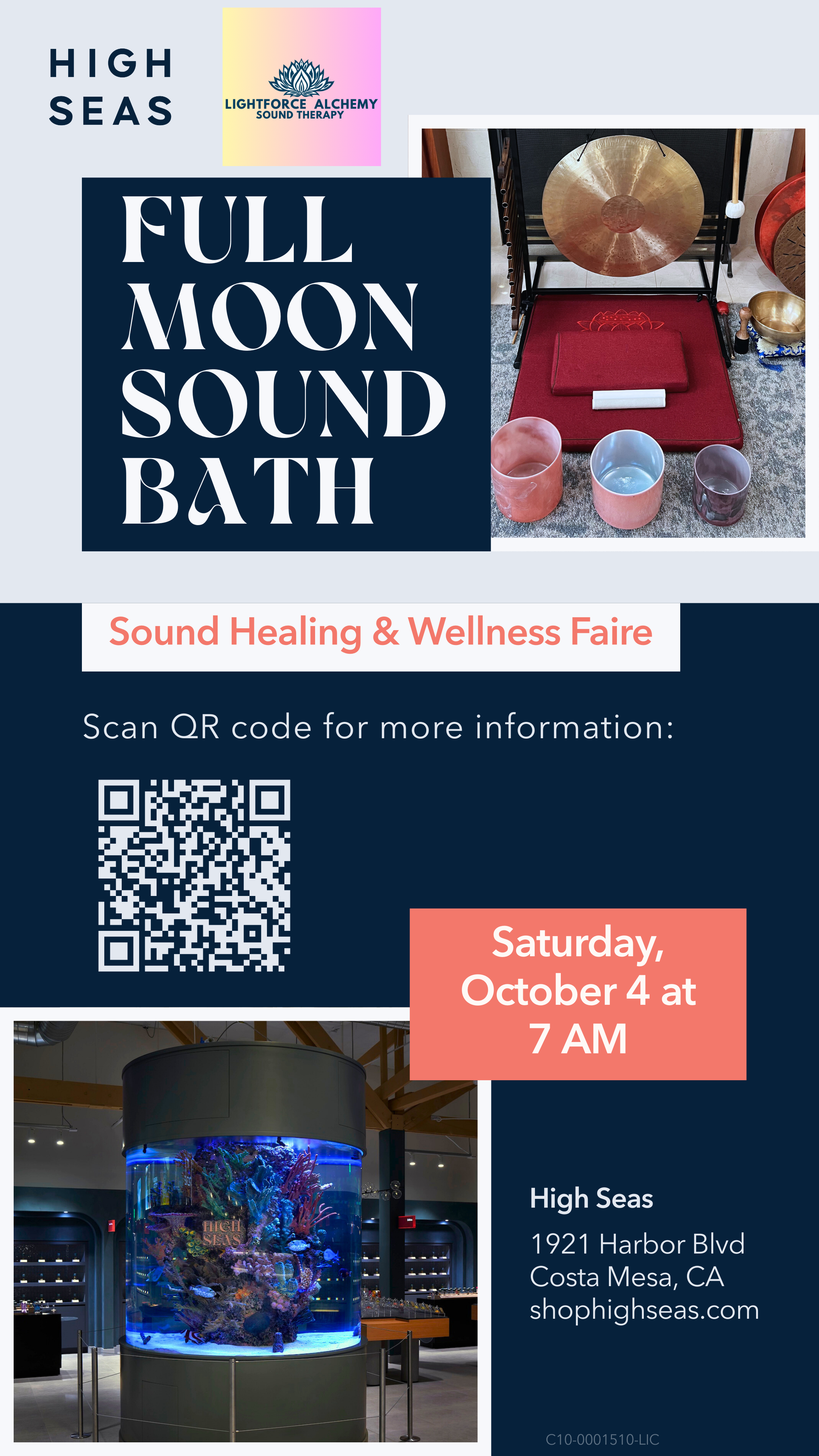 On October 4, High Seas becomes a sanctuary of resonance, where lunar energy and the shimmer of our aquariums set the scene for a morning of deep restoration. Immerse yourself in the vibrations of a full moon sound bath, then linger for a wellness faire featuring local vendors and mindful discoveries.