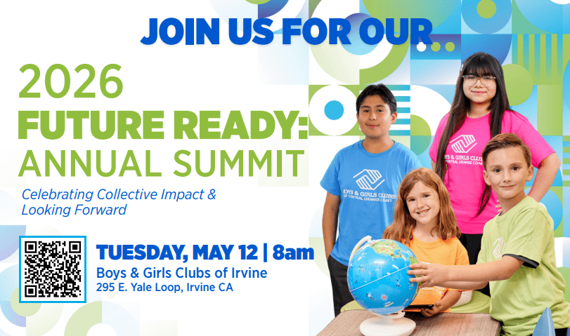 Future Ready Summit for Boys & Girls Club When 05/12/2026 8:00 am Add To Calendar Download ICS Google Calendar iCalendar Office 365 Outlook Live Where Boys & Girls Clubs of Irvine 295 E. Yale Loop,, Irvine, CA, 92604 Event Type Local Events REGISTER HERE