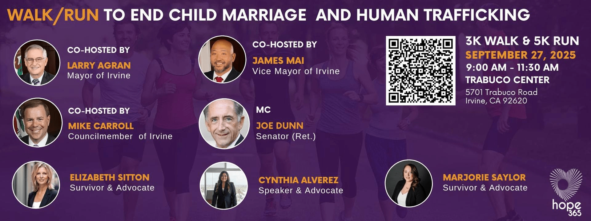 I’m reaching out to invite you to stand with us as a participant of Global Hope 365’s 5th Annual Walk/Run to End Child Marriage and Human Trafficking, taking place Saturday, September 27, 2025, in Irvine.