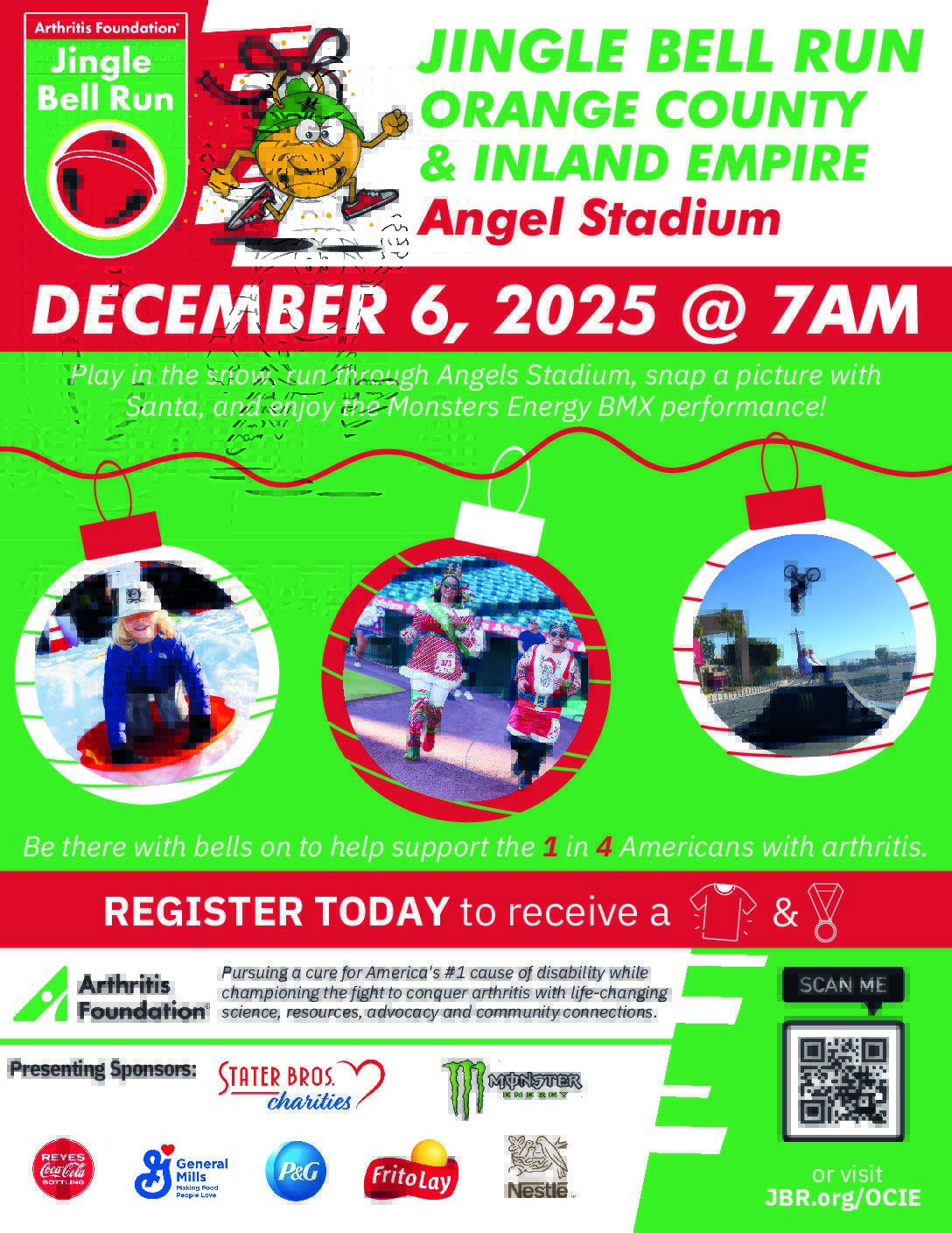 Jingle Bell Run – Arthritis Foundation When 12/06/2025 7:00 am - 10:00 am Add To Calendar Download ICS Google Calendar iCalendar Office 365 Outlook Live Where Angel Stadium 2000 E Gene Autry Way, Anaheim, CA Event Type Local Events