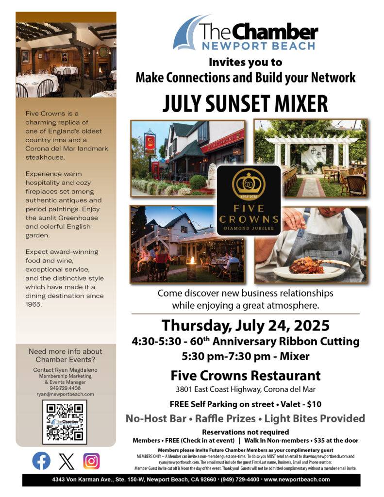 Join us before the Mixer at 4:30 pm for the Ribbon Cutting Celebrating the Five Crowns 60th Anniversary