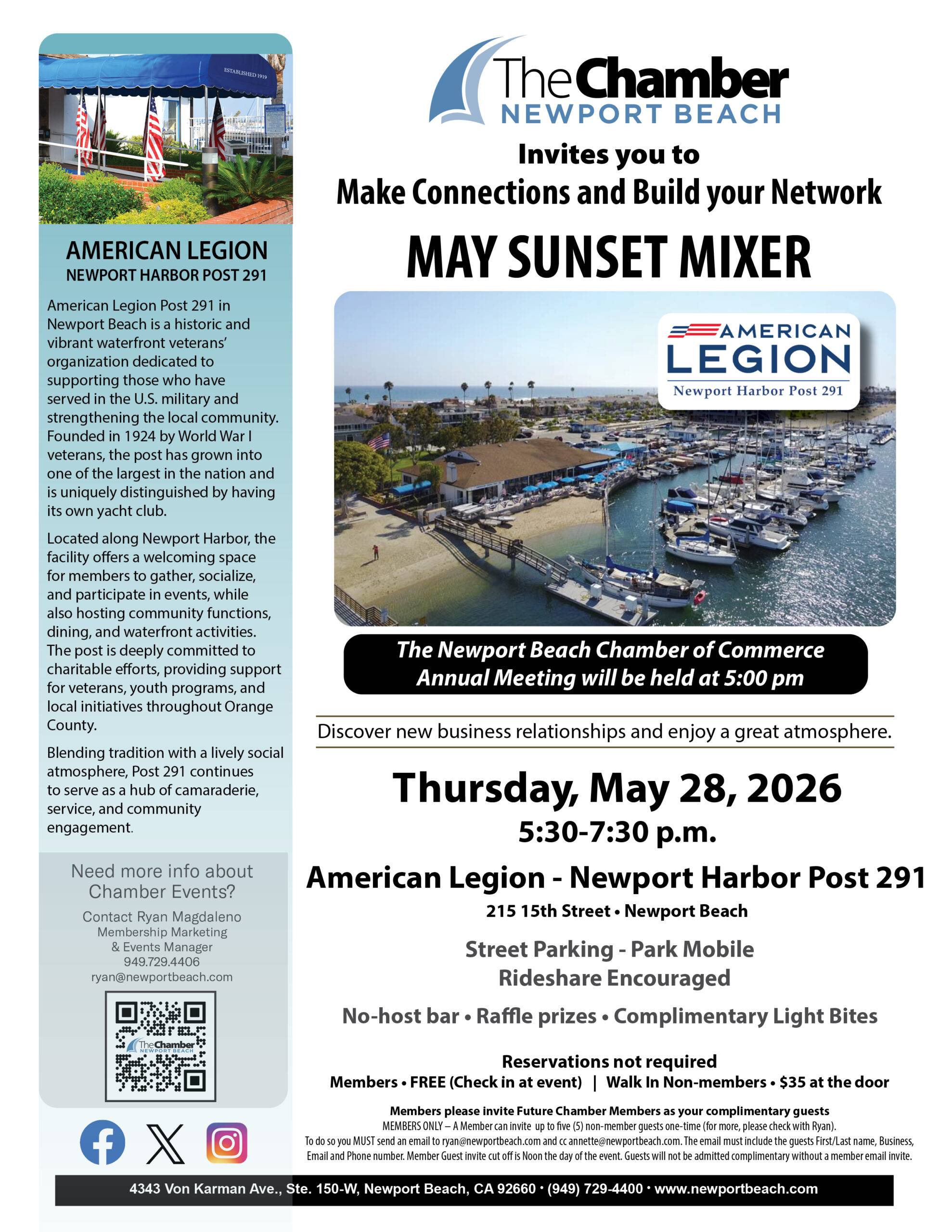 May 2026 Sunset Networking Mixer – American Legion Newport Harbor Post 291