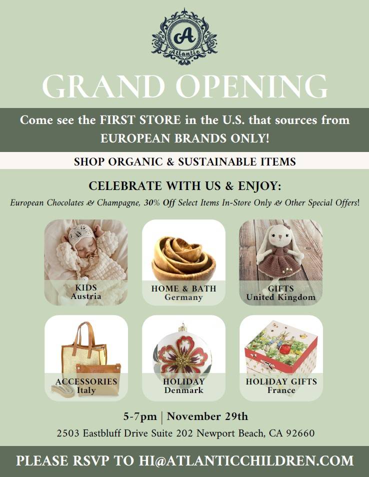Atlantic Emporium is a new retail store in Newport Beach that sources their goods from European brands only. Shop exclusive deals on select in-store items, enjoy delectable European chocolates and champagnes, and check out other special offers when you’re at the event!