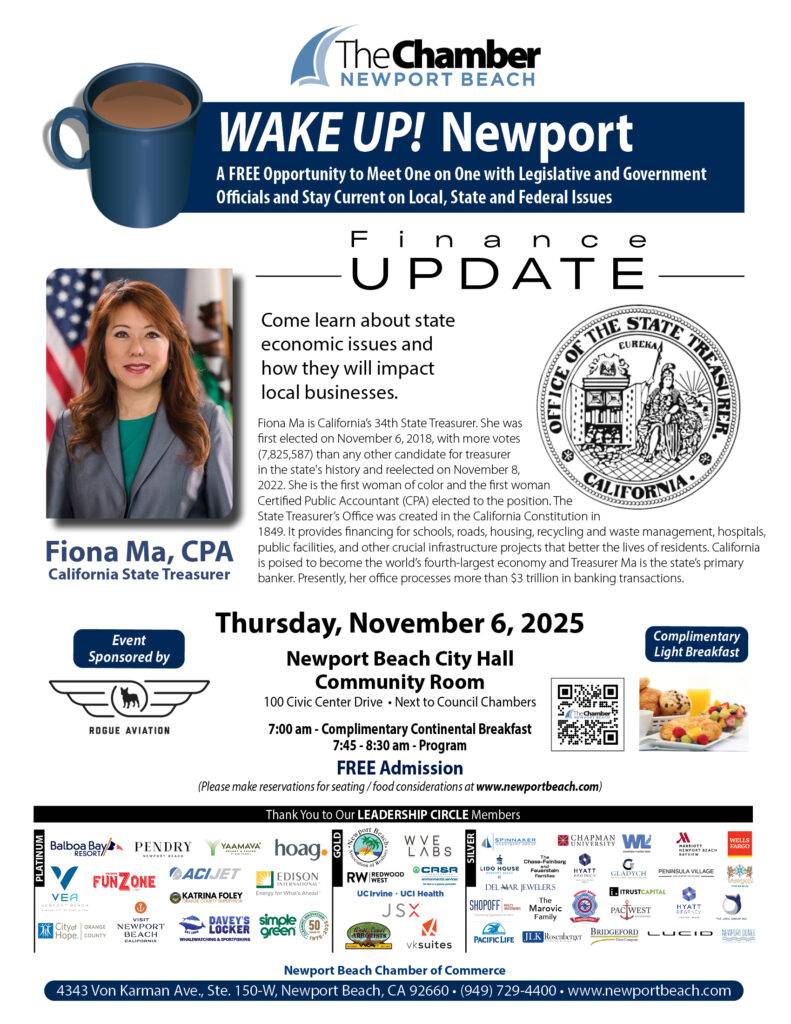 Wake Up! Newport – Fiona Ma, CPA California State Treasurer
