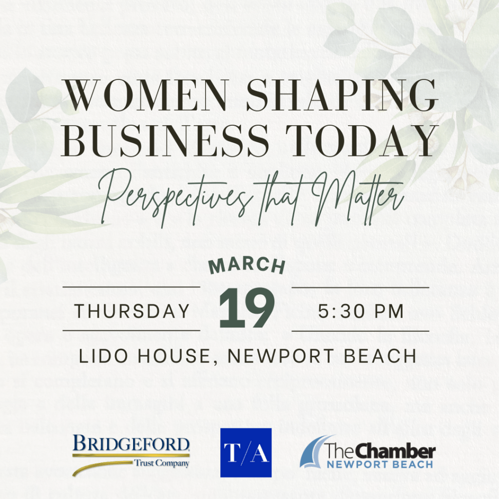 Bridgeford Trust Company, in collaboration with the Newport Beach Chamber of Commerce and Trusted Advisor, invites you to an evening dedicated to celebrating and lifting up women in business.