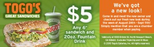 $5.00 6″ Sandwich and 20 Oz. Fountain Drink
