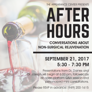 Please join us for an educational evening with Dr. Daines and Dr. Joseph to learn about our physicians’ most highly recommended non-surgical skin care treatments, including: