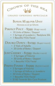 Grand Opening Specials include 20% off Facial Treatments, Skin Care Products, Laser Hair Removal Treatments and Radio Frequency Microneedling and 15% off All Fillers, Kybella and Sculptra.