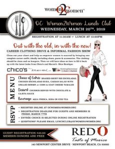 Get a Free Raffle Ticket towards numerous expensive prizes at the upcoming OCWomen2Women Lunch Club event at the RED O at Fashion Island, Wednesday, March 20th at 11:30 am – 1:00 p.m.
